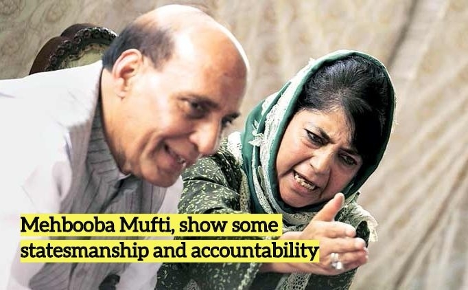 Mehbooba must realise that the political brinkmanship that she normally indulges it does little to build the aura of a strong coalition that has the capacity to negate the evil design of divisive and disruptive forces and usher peace and prosperity in the state. While in power she cannot behave like a leader of the opposition. She must adopt a statesmanlike an approach while accepting responsibility and accountability for her actions.