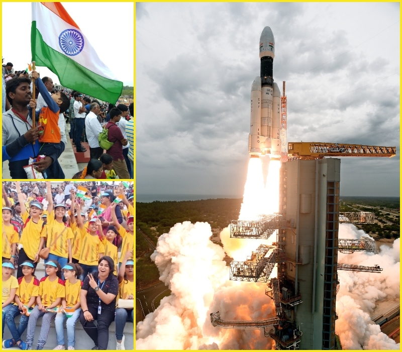 Sriharikota, July 22: To complete 3,84,000 km from earth, with the aim to explore uncharted lunar space, India’s indigenous moon mission, the ramification of ISRO’s tireless efforts, Chandrayaan 2 takes off to the space to meet Moon again.