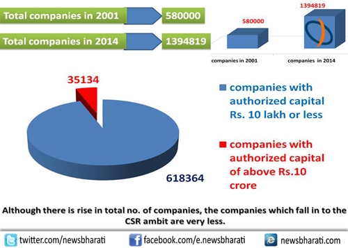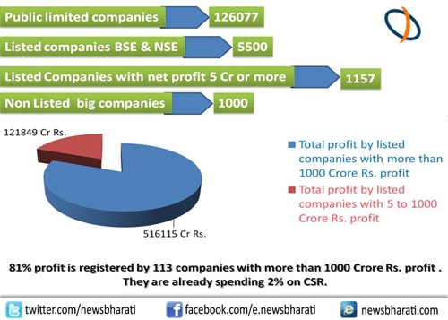 Add to that possibly about thousand companies who have profit of above 5 Cr Rs but who are not listed on stock exchanges and you can add another 1000 Cr to the CSR kitty. The cognisance of non-listed companies should be taken because there are some giant non-listed companies like Nuclear power Corporation of India or Hindustan Aeronautics or BSNL.