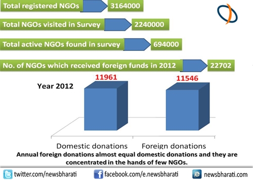 It should be a matter of pride that almost 2 Cr people participate in NGO activity in India, where almost half the population is below poverty line or just above it. It can be seen that the NGOs receiving foreign funds enjoy an advantageous position. Thus only about 22000 NGOs receive 11000 Crore Rs. while rests of the 6.5 lakh NGOs also share the same amount of donations between them. This is where external anti India forces harp on the opportunity as exposed in the newsbharati report ‘IB report, NGOs and the geopolitics of energy’.
