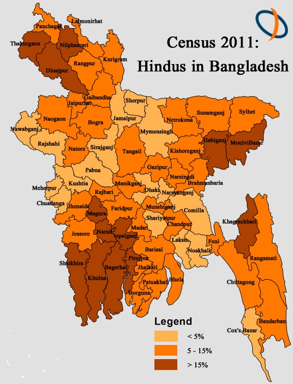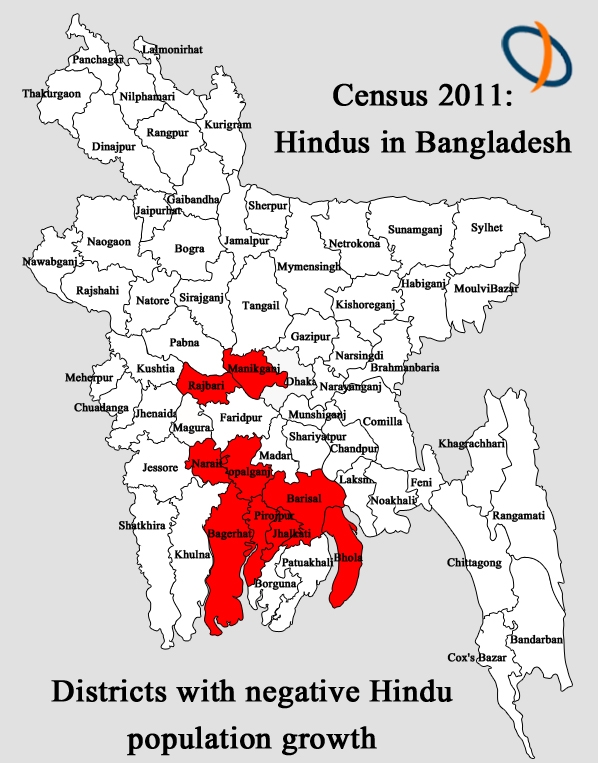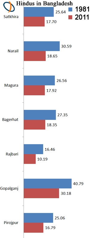 Hindus now remain just over 8.6 percent in Bangladesh. In every decade since 1951 the percentage of Hindus has declined. This decline is without exception in all districts of Bangladesh.