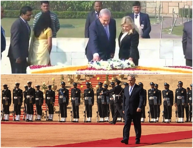After receiving the ceremonial visit, PM Benjamin Netanyahu along with his wife Sara paid tributes at the memorial of Mahatma Gandhi, Rajghat.