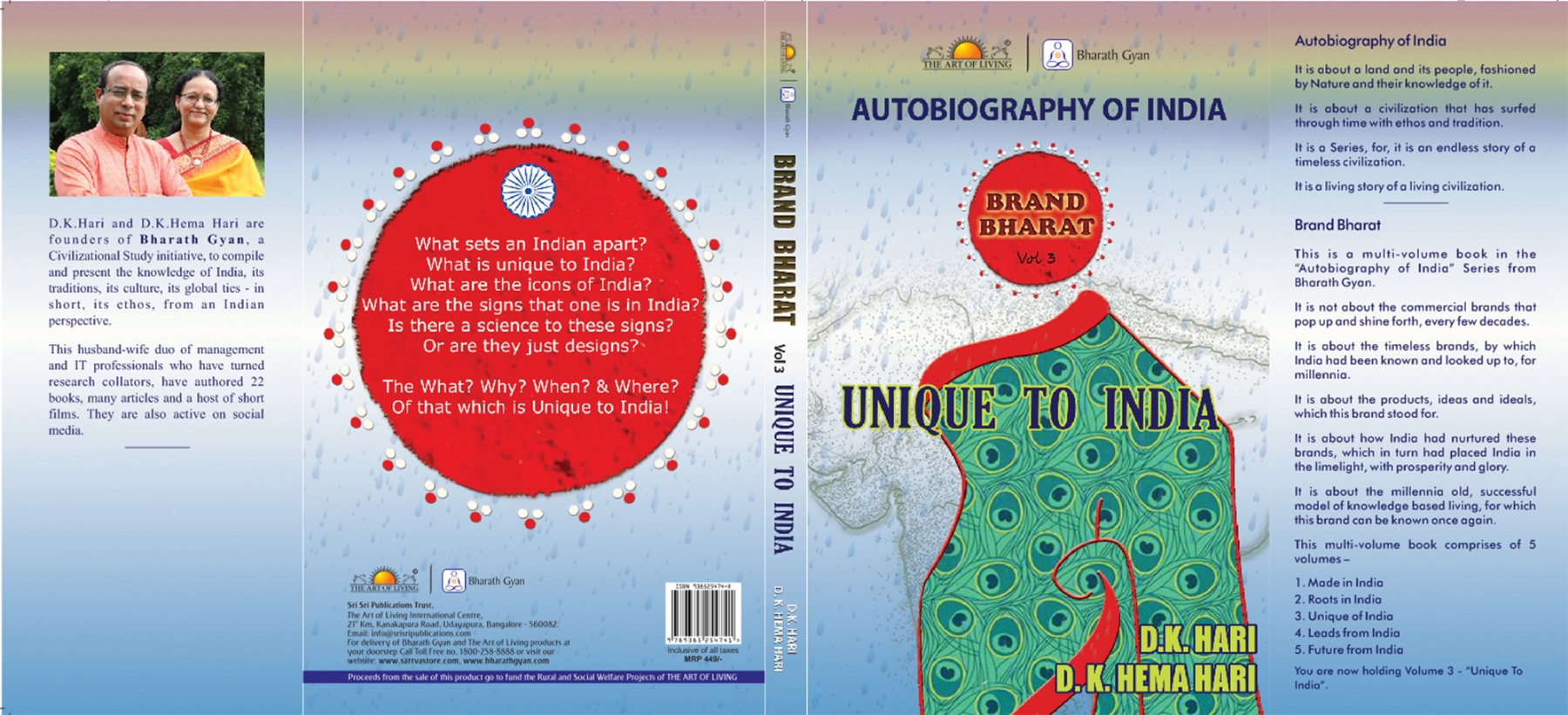 These icons, these signs of India with a good brand recall, have given the India civilisation a unique identity and a distinguished brand value. Of these, the visible facets that set apart India from the rest of the world has been highlighted and showcased in this volume. Namaste, Swastika, temples, Saree, Bindi, Tanks etc. have been covered along with their scientific values.