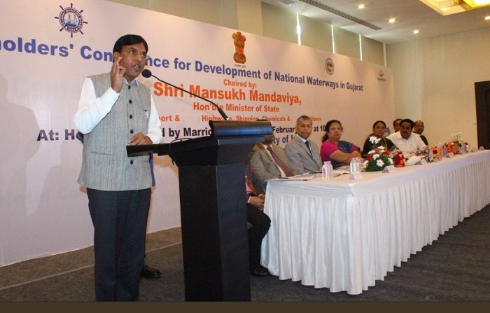 Surat, February 12: Underlining the importance of waterways in order to improve the industrial connectivity, Union Minister Mansukh Mandaviya said that inland waterways would boost the economic prospects of coastal states. Speaking at the Stakeholders’ Conference on inland waterways, the Minister announced the mega river-linking plan to improve the efficiency of goods and passenger transportation.