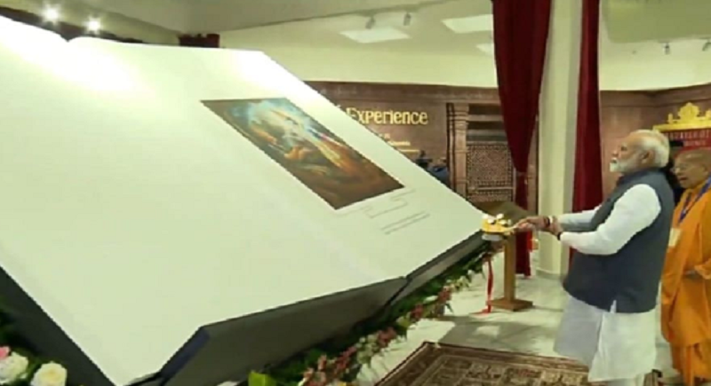 Modi appreciated the efforts made by everyone for the creation of this largest book. He said this will be a symbolic mark for long years. Prime Minister remembered teachings of Bhagawat Gita saying that it is valuable for cognition to science.