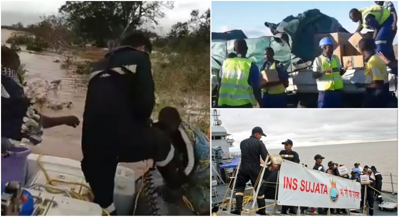Indian Navy posted a video in Navy personnel are helping the cyclone hit sufferers which struck the coast of Mozambique on 15 March 2019, the ships of the First Training Squadron namely IN Ships Sujata and Shardul and ICGS Sarathi operating in the Southern Indian Ocean were diverted to Port Beira, Mozambique.