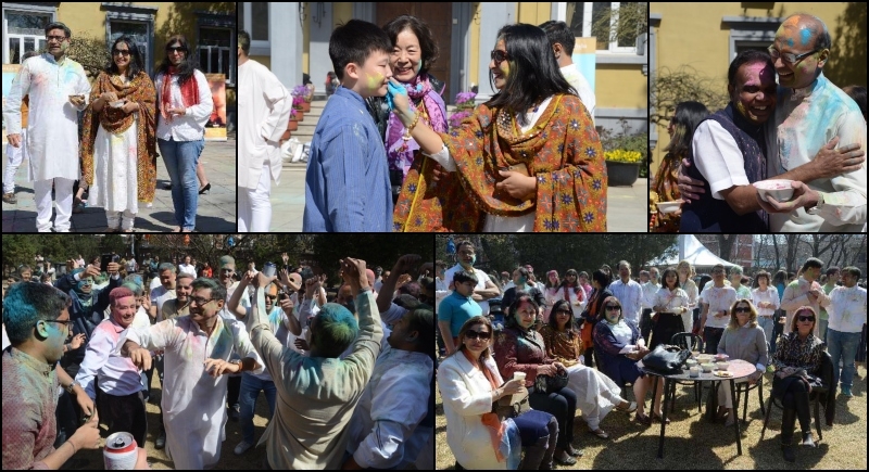 Beijing, March 25: Playing vibrant colours abide the complete day, greeting each other of joy and happiness, dancing on the dhol beats and giving away the sweets spreading sweetness amongst..! This is how we celebrate the festival of Holi in India, right..? Not changing a bit of the required substance of the celebrations, the Indian Embassy in China and the community there, buoyantly fanned out the holi colours amongst, involving their Chinese belongings.