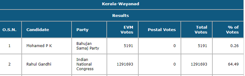 Wayanad was chosen by Rahul Gandhi as a 2nd parliamentary constituency with Amethi in UP. Now, Rahul Gandhi is in the lead in Wayanad with 81681 votes, which is the highest ever margin in the state, Rahul Gandhi was leading over Communist Party of India candidate PP Suneer.
