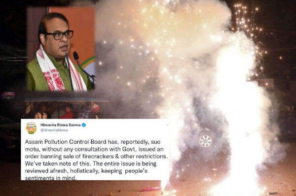 Dispur, Oct 26: Assam CM Himanta Biswa Sarma will be reviewing the recent order of the Assam Pollution Control Board in which it has imposed a ban on firecrackers and allowed only green fireworks, that too for two hours, on Diwali. He also said the order was issued without any consultation with the state government and a new decision on the sale and use of firecrackers will be taken.