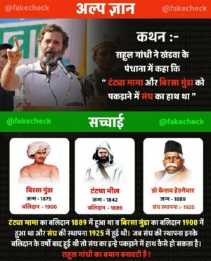 However, the reality is much different than, what Rahul has tried to show. As per Rahul, the RSS was behind the arrest of the Tantya mama, but in reality, the RSS was established 36 years after his death.
