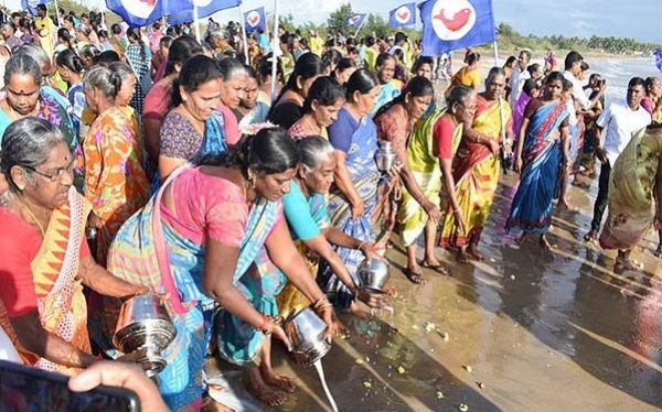 "We strongly believe that tsunami would not affect us. On December 26, 2004, when Tsunami hit the coast, none of us was affected and not a single boat was damaged except water hitting the coastal area. This is a way of thanking the goddess for protecting us," said some fisherman. Another fisherman said that prevent such tsunamis from coming, Gangamma mother was worshipped under the guidance of the villagers with special pooja and milk abhishekam.