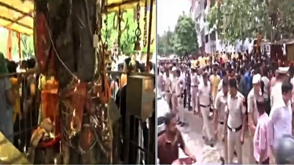 People have now alleged that the administration is trying to demolish the entire temple and hence so much security has been provided. Heavy police and security forces are deployed in the area. People are continuously protesting. The temple is located in between a Madarsa and a mosque. The locals have also been continuously protesting against the cutting of meat.