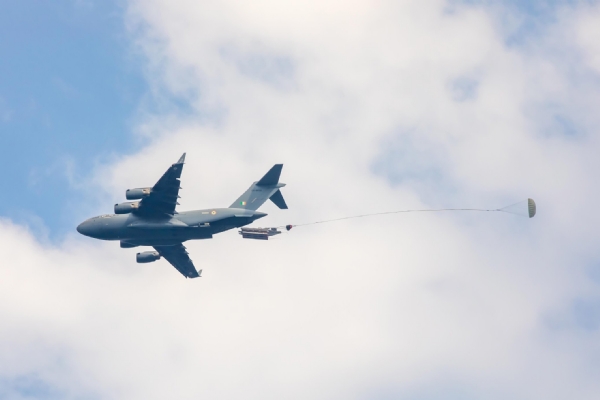 Visakhapatnam, Sept 20: In a huge milestone, the Indian Navy and Air Force conducted the maiden air drop of a Rigid Hull Inflatable Boat (RIB) from a C-17 aircraft near Visakhapatnam on September 19, 2023.