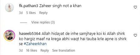 This erupted a controversy with a section of the community saying that by doing this, Zaheer Khan is going against his religion.