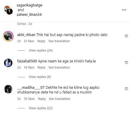 Zaheer Khan, the ex-Indian cricketer, faced online abuse from radical Islamists after posting images of himself and his wife, actress Sagarika Ghatge, marking the Hindu New Year Gudi Padwa