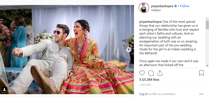 This being the fourth big fat Indian wedding, following the celebrity couples getting married this year. Neha Dhupia – Angad Bedi, Sonam Kapoor - Anand Ahuja, Deepika Padukon – Ranveer Singh, Priyanka and Nick mark the fourth celebrity couple getting married in year 2018.