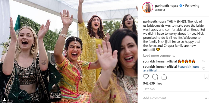 Meanwhile, the bollywood actress and Priyanka’s cousin Parineeti expressed her happiness of being bride’s maid via pictures on the social media. She welcomed Nick to the Chopra family giving him an informal tag of brother-in-law. “The job of us bride’s maid was to make sure the bride was happy and comfortable. But we din’t have to worry about it as Nick promised to do it all his life.”, said Parineeti on the occasion .