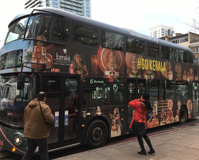 Thiruvananthapuram, March 13: Who will deny visiting a place like Gods own country! Kerala Tourism has always been on a high note enhancing its aura and elegance over the scenic beauty. Currently the state’s beauty is swaying the streets of London. Kerala Tourism is currently enjoying a huge visibility on the streets of London, especially Central London, thanks to a new mode of branding launched by the state tourism department - 'Bus branding'.