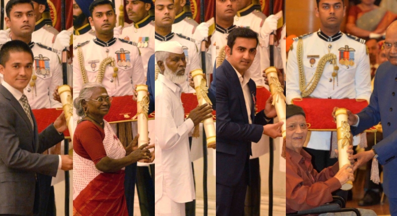 New Delhi, March 16: President Ram Nath Kovind presents Padma Awards at 2019 Civil Investiture Ceremony at Rashtrapati Bhavan. Former cricketer Gautam Gambhir, actor Manoj Bajpayee, mountaineer Bachendri Pal, ISRO scientist Nambi Narayanan and Odisha tea seller D Prakash Rao were among the recipients of the honour. One of the highest civilian awards of the country, the Padma Awards were conferred at the 2019 Civil Investiture Ceremony.