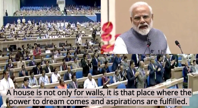A house is not only for walls, but it is also that place where the power to dream comes and aspirations are fulfilled. A home is as much about dignity and security as it is about the shelter. We are ensuring that houses have water, power, ujjawala connections and other such facilities. The quality of house and space per home has also improved during past four and half years, Said PM Modi.