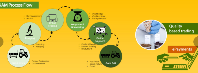 The eNAM electronic trading platform has been created with an investment by the Government of India through the Ministry of Agriculture and Farmers’ Welfare. In a way, its value-added service to market-yards pans India. It is a competitive platform which connects government and private market yards alike which in return assures farmers with "best possible return for their goods". Special software is developed for this, any APMC market can connect to eNAM with their existing application. It's free for any APMC market and customization is available as per the state APMC acts/rules.