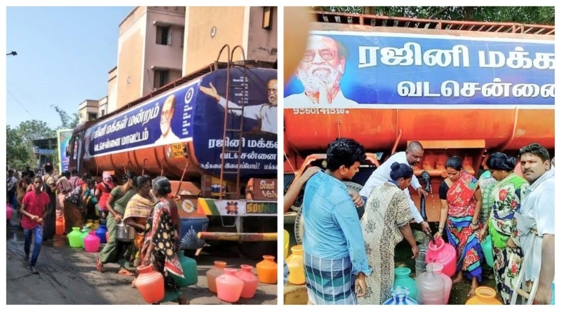 Chennai, May 29: Superstar Rajinikanth always knows for his ground-to-earth nature and connection with common people. Now enhancing this connect, Top actor and politician Rajinikanth's Makkal Mandram (People's Forum) is supplying water free of cost to people of North Chennai reeling under water scarcity in the summer season.
