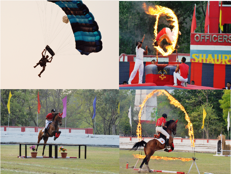 Enthusiastic and energetic Cadets demonstrated very high standards of physical fitness, mental robustness and a rare spirit of adventure. PT event was a mesmerising and professional display of agility and physical strength by the Gentlemen Cadets. Other events included grand Equestrian Display by the Gentlemen Cadets, Fly Past by Micro-light Aircraft, Sky Diving, ‘Kalaripayattu’ Martial Arts Display, Gymnastics Display by ‘North East Warriors’ and an impressive Band Performance.