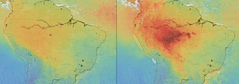 Using data from Copernicus Sentinel-5P, the image shows the difference in carbon monoxide in the air between July and August. This pollutant is often associated with traffic, but here we see the increase in atmospheric concentrations following the fires. Naturally, once in the air, it can cause problems for humans by reducing the amount of oxygen that can be transported in the bloodstream. Another image shows how much formaldehyde was released from fires this year compared to 2018. The image also features Africa, which has also experienced more fires than last year.