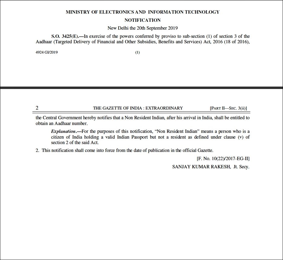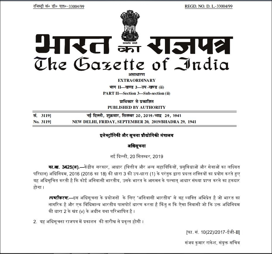 According to the information, the Central Government has also issued a notification regarding making Aadhaar Card available to NRIs immediately. In the notification issued by the Ministry of Electronics and Information Technology of the Central Government, it has been said that NRIs will be able to get Aadhaar card when they come to India. However, this rule will be applicable to NRIs who hold valid Indian passports.