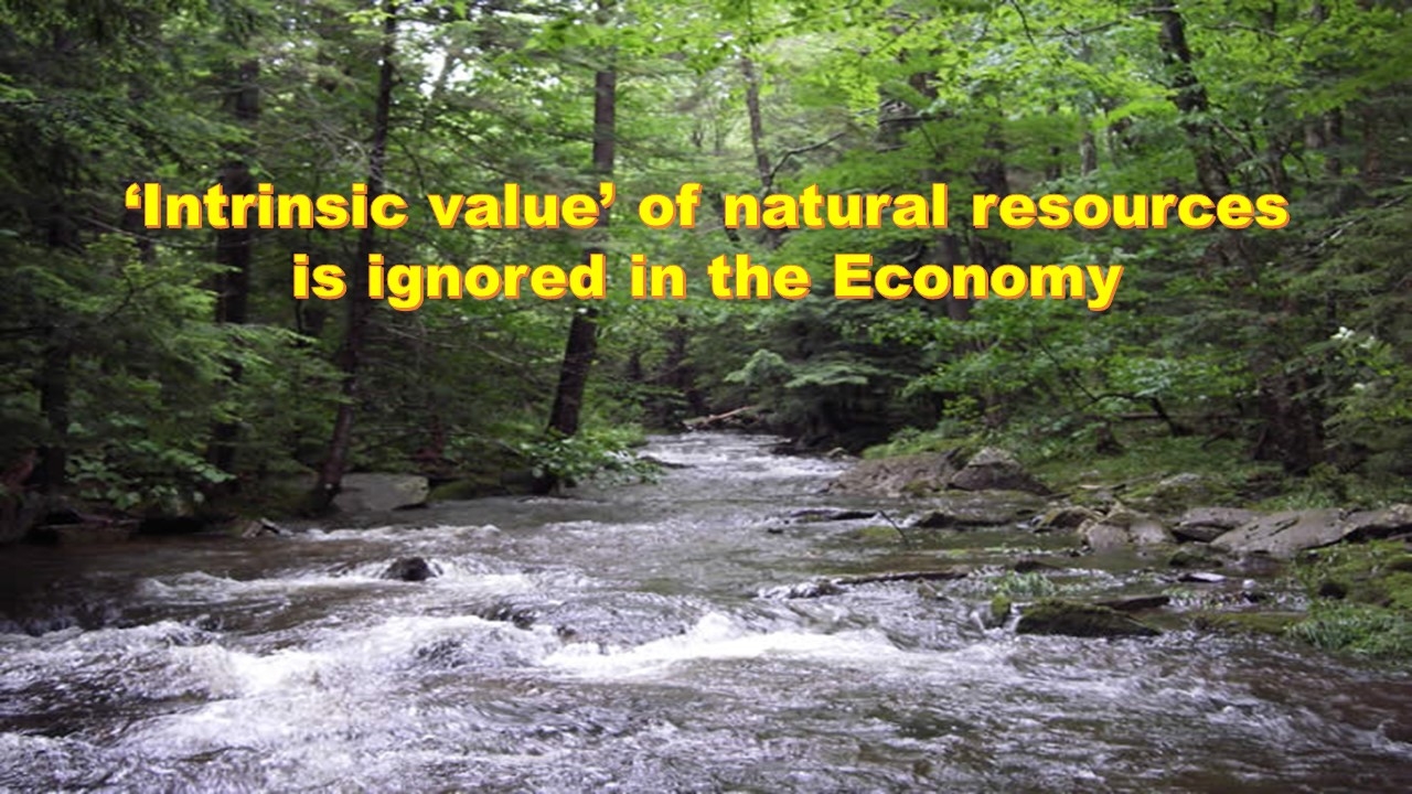 Extrinsic value of natural resources endows material well-being to humans, whereas intrinsic value bestows the capacity to sustain life, upon the planet. Such intrinsic value is never considered in the economy. Therefore people tend to look at ‘Economy’ and ‘Ecology’ as two separate subjects, or most often contradictory to each other.