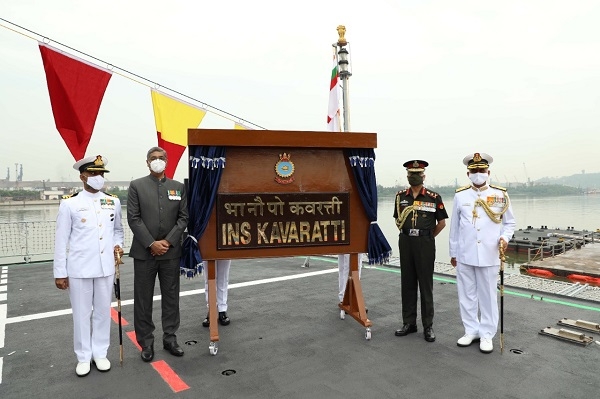 Vishakapatnam, Oct 23: INS Kavaratti (P31), the last of the four indigenously built Anti-Submarine Warfare (ASW) stealth corvette built under Project 28 (Kamorta Class) was commissioned into the Indian Navy by Chief of Army Staff, General Manoj Mukund Naravane here at Naval Dockyard.
