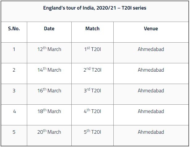 It will be followed by the 5-match T20I series, which will also be held in Ahmedabad starting from March 12. All five matches will be played in the city. The last leg of the tour will feature ODIs and all three matches will be held in Pune. The restrictions to limit the tour comes due to the current pandemic situation prevailing in the country.