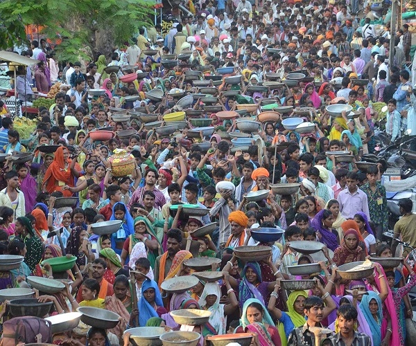20,000 men and women from 500 villages joined voluntarily on 29th February 2020 to undertake soil and water conservation work in Jhabua district. They participated on their own with no monetary expectation. They had even brought their own food. Women with small children, elders, men, all participated in this ‘sewa-sanskar mela’. This action resulted in the completion of massive development of land- a community resource. People came here to participate in ‘Shivji ka Halma’. Halma is a bhili tradition to help distress. Here it was Her, ‘The Mother Earth’! The underlying feeling was ‘She is thirsty.’