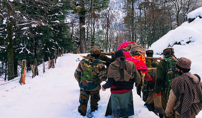 Since all roads were blocked due to heavy snowfall, the woman was given primary aid at this centre. Again, the Army men took the pregnant woman on a stretcher to the location where transportation was available i.e. 3 km from the PHC.