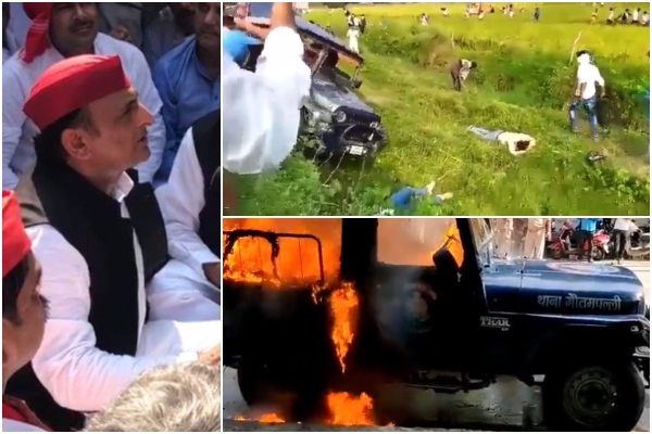 "Vehicles are being run over those who raise their voices. We want the arrest of the minister and his son in the Lakhimpur incident," Akhilesh Yadav said. A police jeep parked in front of the Gautam Palli police station near the place where Akhilesh Yadav sat on a dharna was set on fire allegedly by party workers.