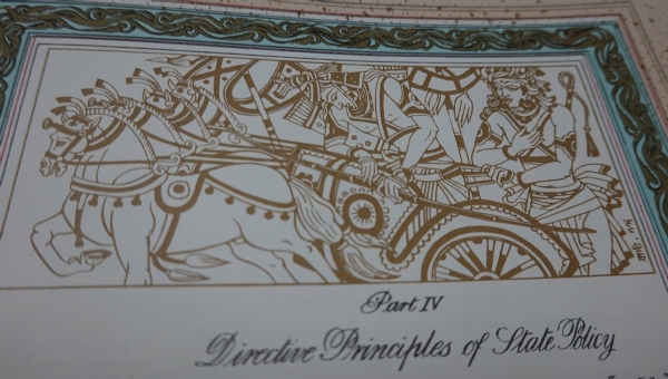 In the Part IV: Directive Principles of State Policy, it begins with the iconic scene of Arjun and Krishna’s conversation before the war.
