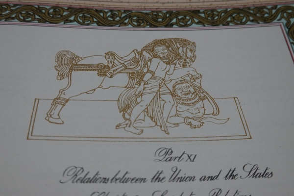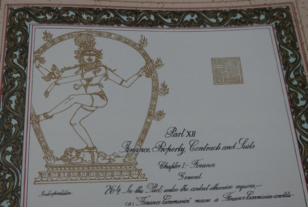 In the Part V: The Union, there is the image of Buddha’s Enlightenment is lent to the part on rules related to the President and Vice President.