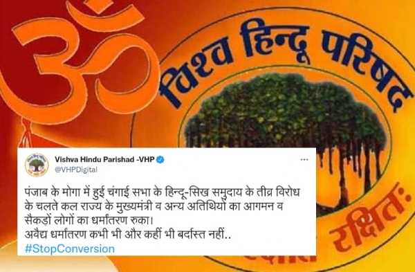 The Hindu organization tweeted, "Due to opposition from the Hindu-Sikh community against pastor Bajinder Singh’s healing meeting held in Moga, Punjab, the arrival of the Chief Minister and other guests, as well as the conversion of hundreds of people, was prevented yesterday. Illegal conversion will never be tolerated anywhere".