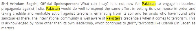 "It is not new for Pakistan to engage in baseless propaganda against India. Pakistan would do well to expend the same effort in setting its own house in order and taking credible and verifiable action against terrorism emanating from its soil and terrorists who have found safe sanctuaries there," spokesperson Arindam Bagchi said.