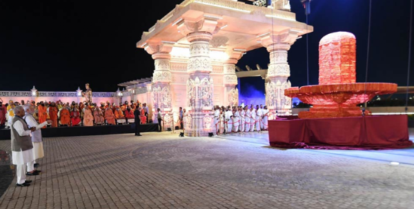 The Mahakaal Path contains 108 stambhs (pillars) which depict Anand Tandav Swaroop (Dance form) of Bhagwan Shiva. Many religious sculptures depicting the life of Lord Shiva are installed along the Mahakaal Path. The mural wall along the Path is based on Shiva Purana stories such as the Act of creation, the Birth of Ganesha, Story of Sati and Daksha among others. The Plaza area, which is spread over 2.5 hectares, is surrounded by a lotus pond and contains the statue of Shiva along with fountains. The entire premise will be monitored 24x7 by Integrated Command and Control Centre with the help of artificial intelligence and surveillance cameras.