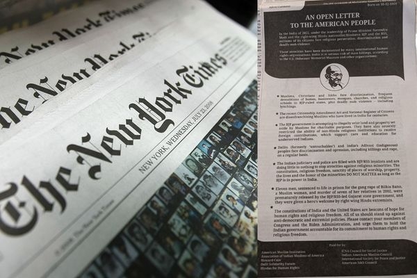 In its ad, NYT highlights the "imaginary discrimination" against minorities in India to criticise the Indian government. It further twists India's internal issues in a bid to provoke the American people against India.