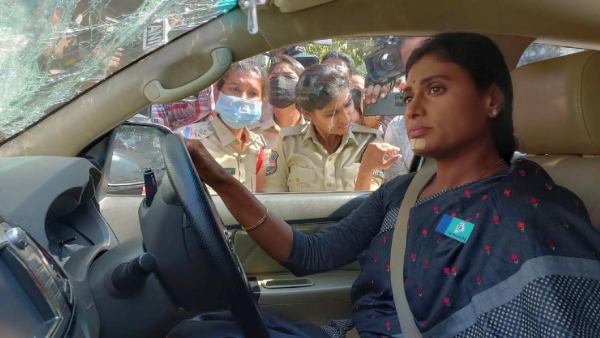 As YS Sharmila started her car to join the protest rally to K Chandrashekar Rao's official residence, police came and towed away her car while she was in the driver’s seat. The visuals showed police dragging away the car with her in it.