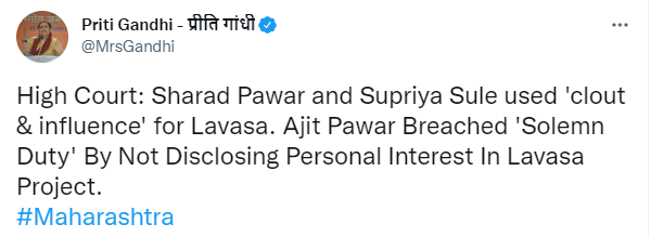 On Ajit Pawar's role in the case, the bench observed that he, by virtue of being the ex-officio chairman of Maharashtra Krishna Valley Development Corporation at the relevant time, had sanctioned the Lavasa Project. He was a part of the meeting which granted clearance to proposed dam that would aid in water supply to Lavasa. The bench noted that it was his 'solemn duty' to disclose his personal interest in the matter.