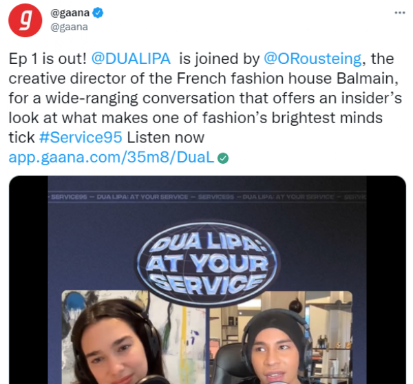 Mumbai, March 2: International pop star Dua Lipa’s first-ever podcast ‘Dua Lipa: At Your Service’ was launched exclusively on the platform Gaana. This is part of a strategic partnership Gaana has entered into with Warner Music India. India's preferred destination for International Artists, having over 180 million users, Gaana will be the exclusive partner for Dua Lipa's new podcast in India.