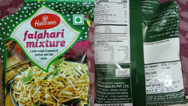 In the video clip, the reporter is seen confronting Halidram's store manager for the Arabic packaging on the said product. The snack in question is called 'Falhari Mixture'. It has been one of the most popular fasting mixtures of the brand. The packaging of the product shows text in English and Gujarati on the front, along with a green dot, symbolising it’s a vegetarian product.