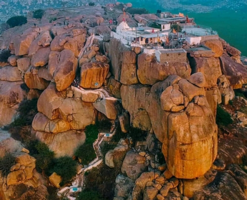 Other temples around the Yantrodharaka Hanumantha temple just about 5 mins climb from the Yantrodharaka temple, there is a small temple dedicated to Lord Srinivasa (Incarnation of Lord Vishnu); an idol that has been carved by Sri Vyasaraja himself. In front of the Yantrodharaka temple, below a fig tree; many snake stones are also worshiped.