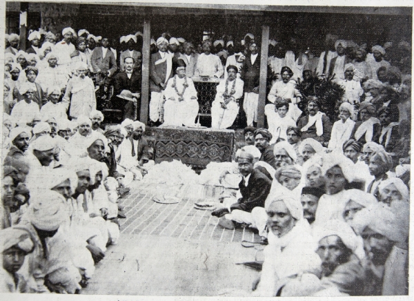 1. Lokmanya Tilak seen here with Shri Rajmal Lakhichand at Malkapur for the Swarajya Tour. 'On 8th Feb, Lokmanya gave a lecture on the need for Swarajya at Malkapur. Crowd was around 10,000. Shri Rajmal Lakhichand was the Chairperson,' the description in the below says.