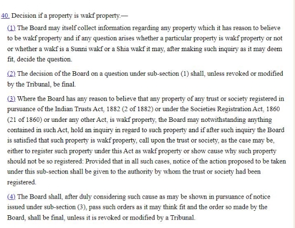As per Article 40 of the act, whether it's your land or Waqf land will be decided by the Waqf board and their decision will be final. Anyone who is unhappy with the decision of the Waqf board can appeal to the Waqf Tribunal relating to Waqf or Waqf property(Section 83).