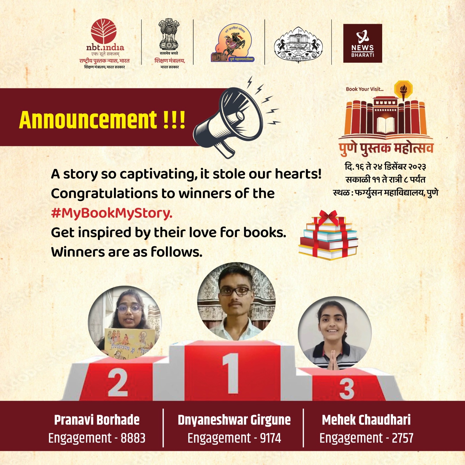 The much-awaited result of this campaign has been announced today at The Pune Book Festival, where the winners get prizes worth 5000rs.