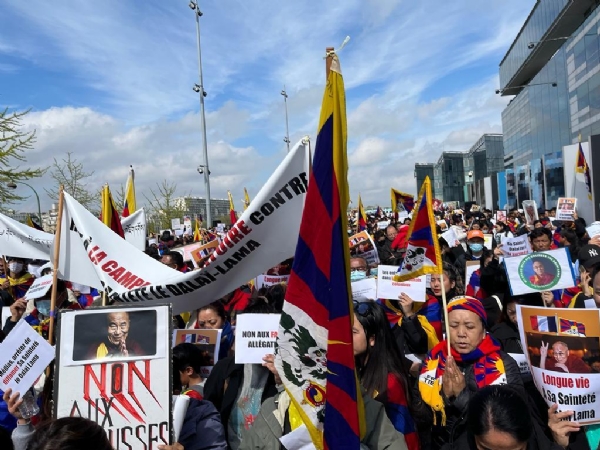 Paris, Apr 24: France-based Tibetan community associations organized a protest demonstration in support of the Dalai Lama in front of the France Television office in Paris on Saturday (Apr 22). The protest was jointly organised by Students for a Free Tibet (STF, France), Ustang Association of France, Dhomay Association of France, Dokham Chushi Gangdrung, Tibet Youth Congress (TYC, France) and members of the Tibetan community.